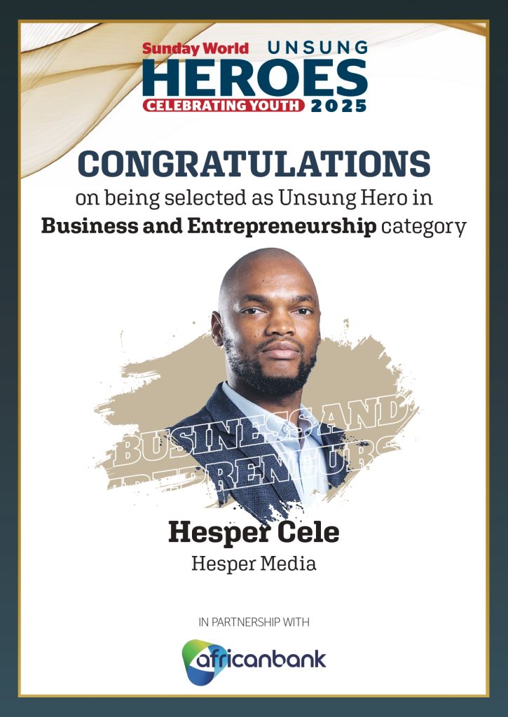 Being featured in the 2025 Sunday World Unsung Heroes Supplement was both an honour and a humbling moment for Hesper Media. It is an affirmation of the hard work, passion, and dedication that founder Hesper Cele has poured into building the company—from mastering his craft as a self-taught photographer to creating opportunities for young people in the industry. At the core of Hesper Media is a commitment to making an impact through our work. This recognition is a reminder that a company with heart, guided by care and purpose, can truly make a difference.